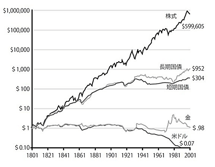 ではなぜ資産形成をするうえで株式投資をした方がいいと行きついたかというと、実際に過去のデータから株は値上がりするものだからということが分かり切っているからです。
